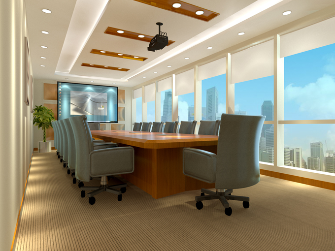 6、高檔辦公室的裝修配套設計:配套設計包括活動家具、窗簾、畫盆景等:活動家具最重要的一點是突出了整個辦公空間的等級制;家具規格的大小、活動屏風的高矮、辦公位置的設置能體現該位置辦公人員在企業的職位大小。在辦公空間中,窗簾一般會選用垂直百葉簾,卷簾只有在會議室和總經理辦公空間中才出現;垂直布簾原則上不宜用在辦公空間中。
