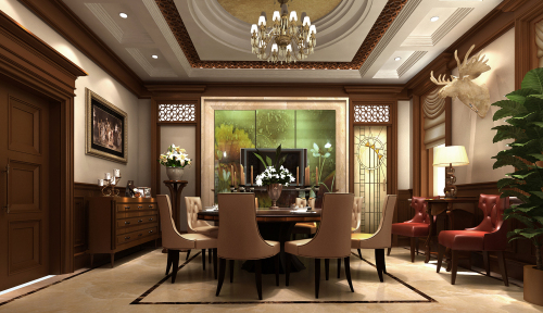 工程說明:別墅設計不僅僅考慮的是別墅居住者的生活習慣及各種風格的搭調,同時還要考慮別墅設計的外在元素。地面大理石拼鋪,深色木質扶手的家具,挑空的層高,歐式的壁爐和歐式木質造型,整個客廳空間就營造出一種沉穩大氣的氛圍。帶著美式風格的粗獷大氣和韻味,